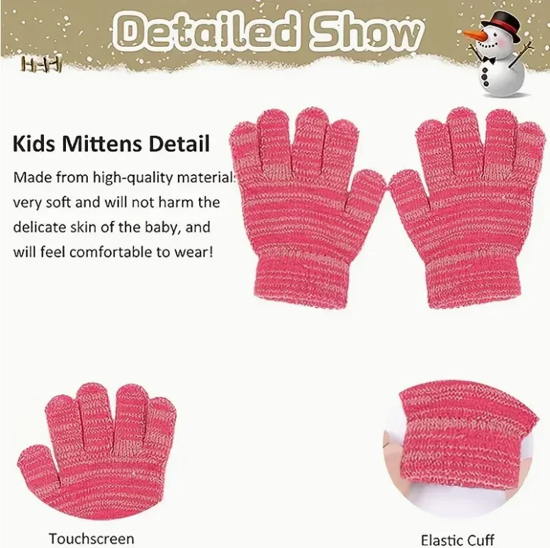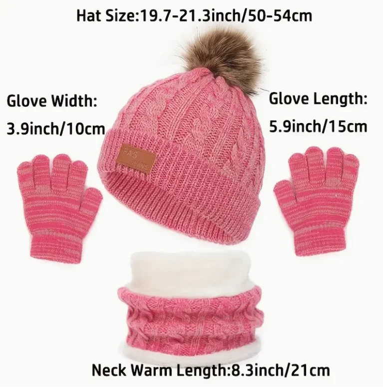 Keep your little ones warm and stylish this winter with this 3-piece set for children. The set includes a cozy plus-velvet scarf, a soft knitted hat, and matching gloves. Designed for ages 2 to 8 years, it’s perfect for toddlers and young kids. The plush velvet lining provides exceptional warmth and comfort during cold weather. Soft and breathable materials ensure irritation-free wear for delicate skin. The hat features a snug fit to protect ears from chilly winds. Gloves are designed for easy movement while keeping tiny hands warm. This set makes a perfect gift for Christmas, Thanksgiving, or any winter occasion. Vibrant colors and stylish design add charm to winter outfits. Durable and practical, it’s an essential winter accessory for every child’s wardrobe.