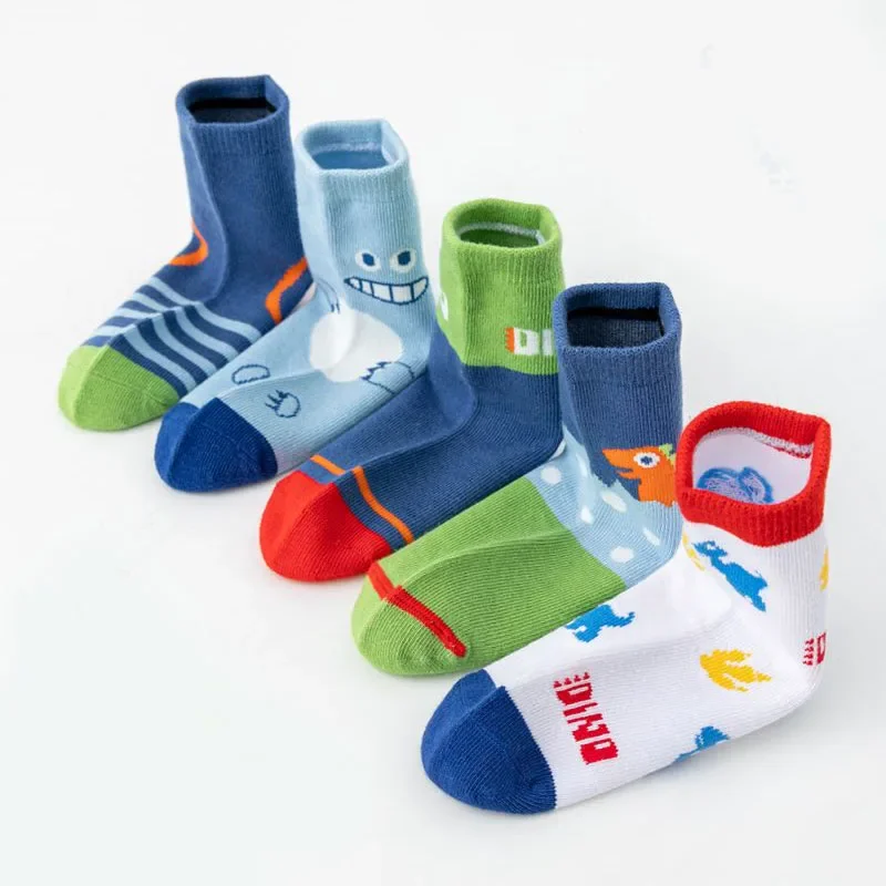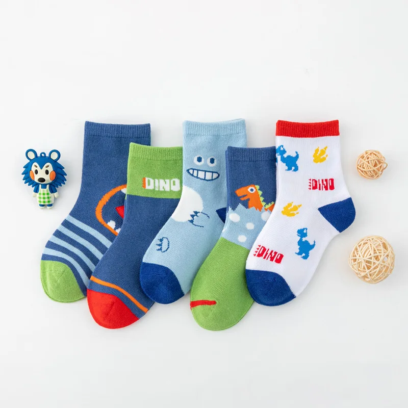 Make every step fun with these 5 Pairs Cartoon Children Socks featuring adorable dinosaur patterns that kids love. Made from soft, breathable cotton, these socks keep little feet comfortable, dry, and happy all day long.