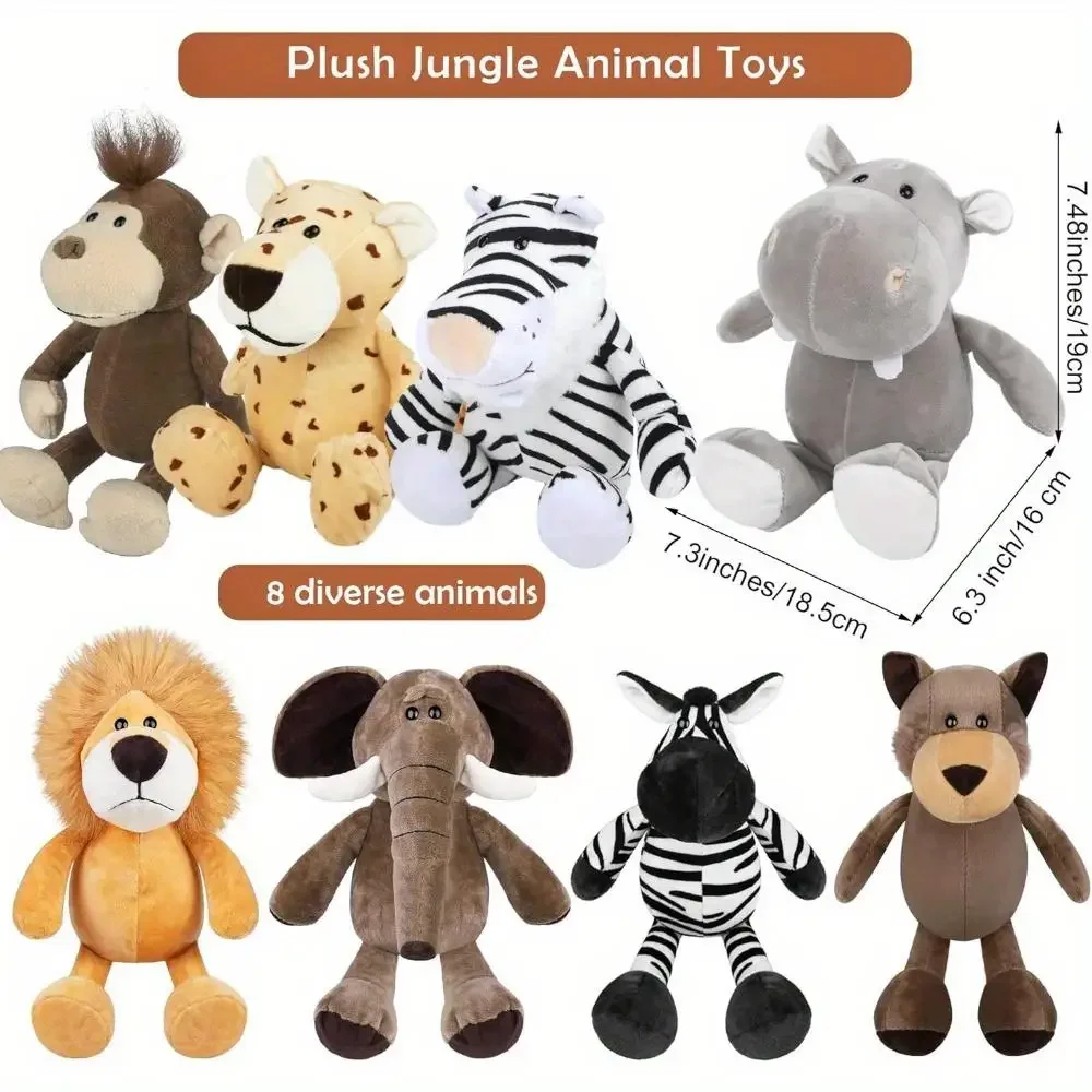 🦁 8-Piece Safari Stuffed Animals Plush Set – Jungle & Zoo Animal Toys (9.8 Inch)