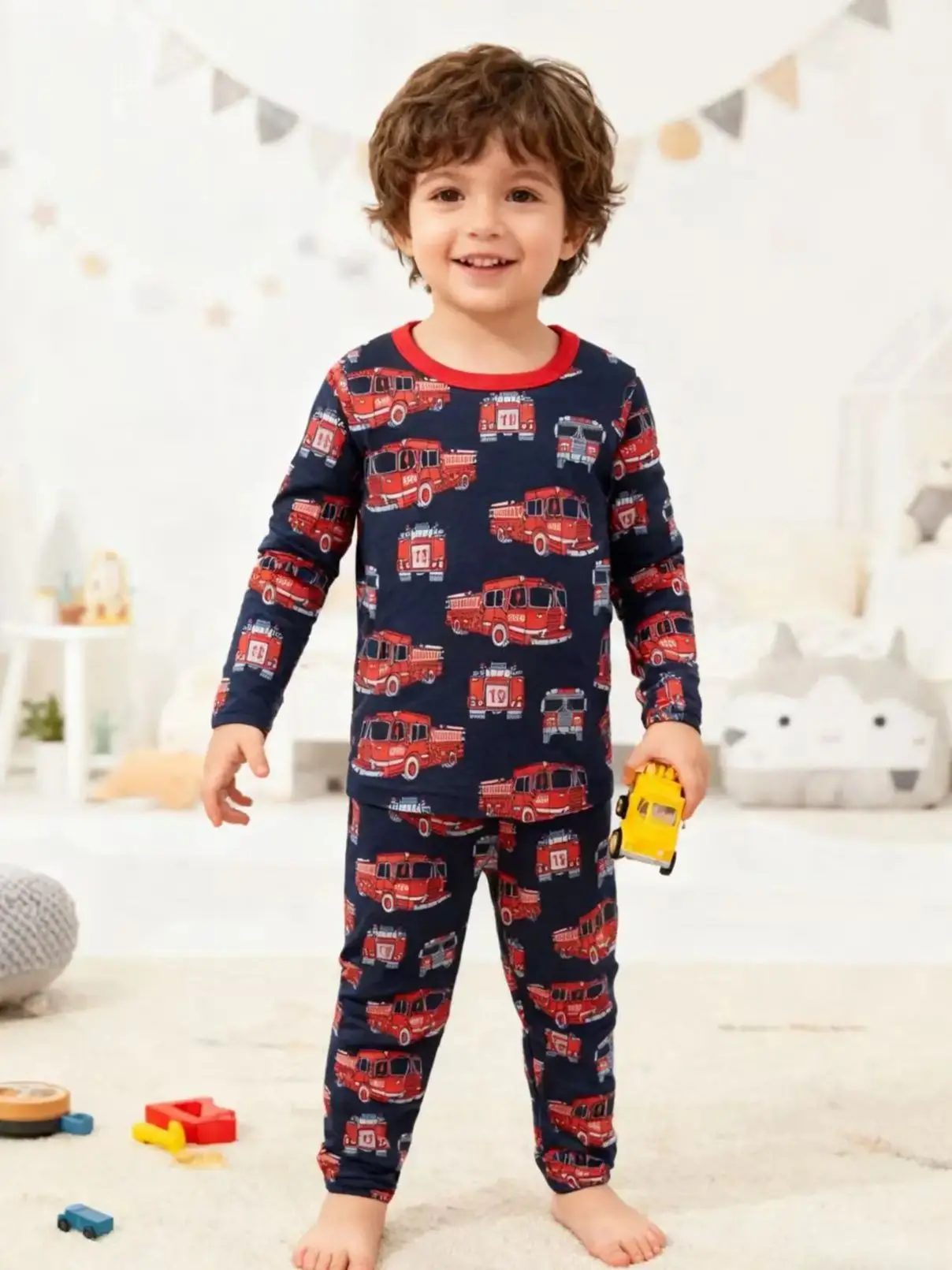 Give your child the perfect mix of comfort and cuteness with this 100% Cotton Pajama Set. Designed for boys, ages 1–8, this soft, breathable pajama set features adorable fire truck print that kids will love. The long-sleeve top and matching pants create a cozy home outfit ideal for bedtime, lounging, or relaxed playtime.