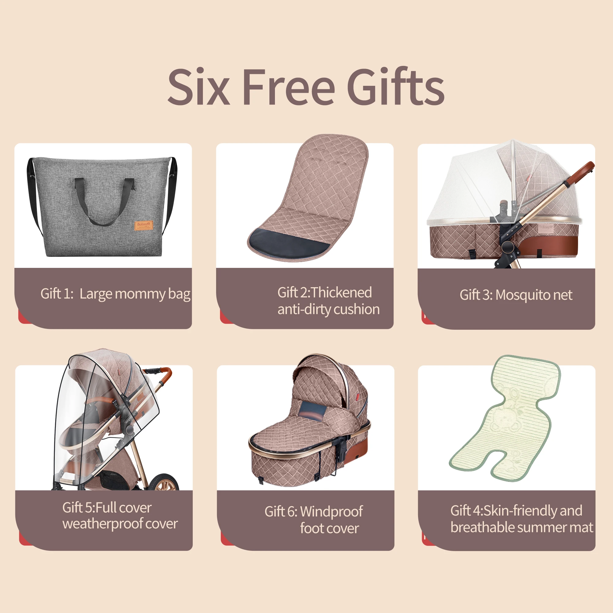 The BCHILDHOOD 3-in-1 Luxury Pram is designed for comfort, style, and convenience for both parent and baby.Newborn-3Y. Its high-landscape design keeps your child elevated from dust and exhaust while providing better visibility. The reversible stroller seat allows you to switch between parent-facing and forward-facing modes with ease. A strong yet lightweight frame makes it easy to push and maneuver. The stroller folds quickly for effortless storage and travel. A shock-absorbing system ensures a smooth and comfortable ride on any terrain. The spacious seat and soft cushioning keep babies cozy from newborn to toddler stages. A large canopy offers excellent sun and wind protection. Premium materials give this stroller a refined and modern look. Perfect for everyday outings, this luxury stroller combines safety, versatility, and elegance in one.