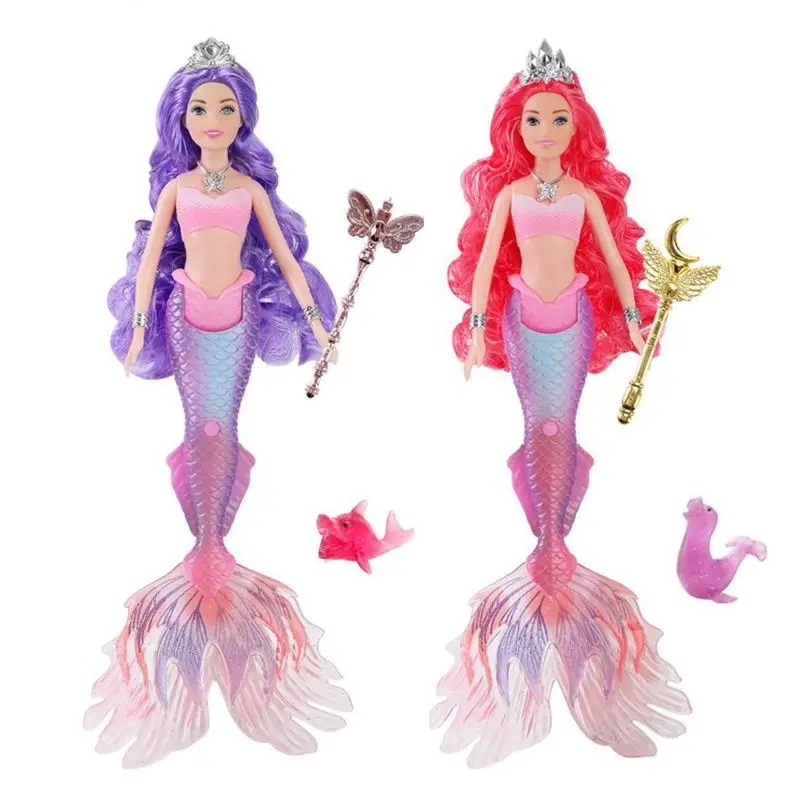This Mermaid Music Light Doll combines colorful design, music, and lights for interactive play. The doll features vibrant hair in pink, blue, red, or purple for a magical underwater look. Her illuminated body adds a fun light-up effect during playtime. Perfect for DIY games, children can accessorize and dress up the doll for imaginative adventures. The miniature size makes it easy for kids to hold and play with. Safe and durable materials ensure long-lasting enjoyment. The doll encourages creativity, fine motor skills, and role-playing fun. Ideal for both boys and girls who love mermaids and fantasy toys. It makes a charming gift for birthdays, holidays, or special occasions. This interactive, colorful mermaid doll brings joy and magical fun to every child’s playtime.