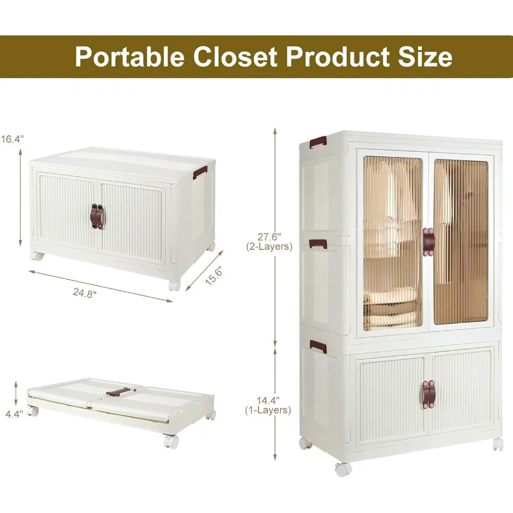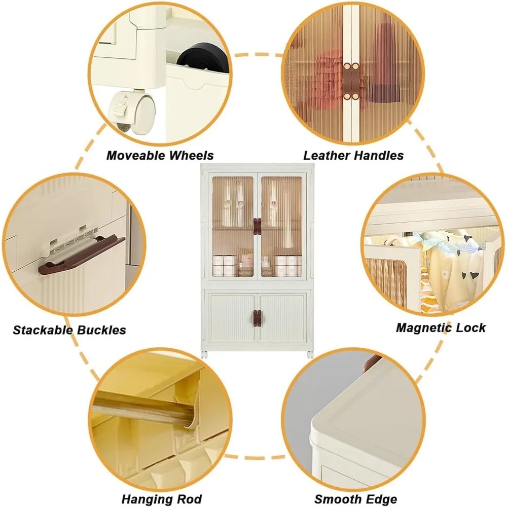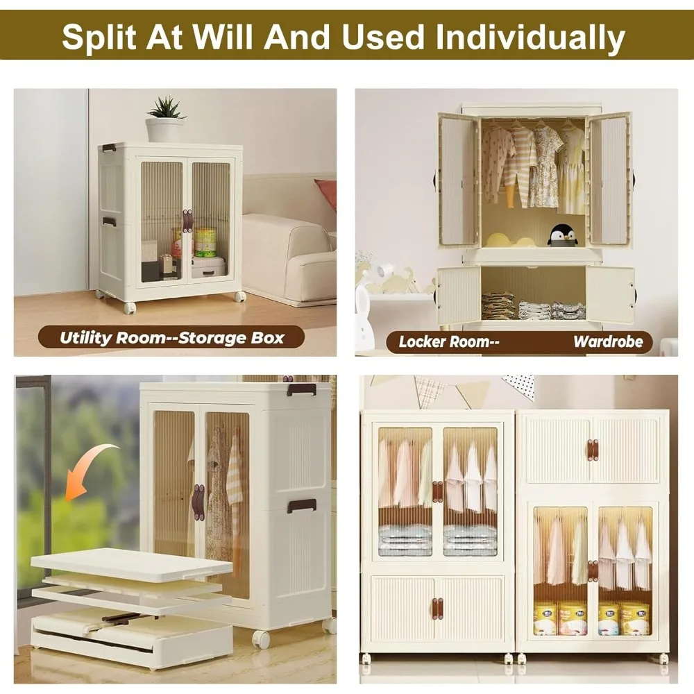 These Stackable Storage Bins with Magnetic Doors offer a versatile and space-saving solution for organizing any room. Made from durable plastic, each unit includes one wardrobe-style layer for hanging or larger items and two folding box layers for neatly storing clothes, toys, linens, or accessories. The magnetic front doors open smoothly and keep items dust-free, while the stackable design lets you customize your storage system to fit closets, bedrooms, playrooms, or laundry spaces. Easy to assemble, sturdy, and stylish—this organizer helps keep your home tidy and clutter-free.