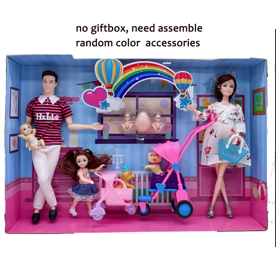 This doll accessories set includes a pregnant mom, father, and family pieces designed for creative pretend play. Each figure features cute details that make storytelling fun for children. The set encourages imaginative role-playing as kids explore family life and caring themes. Made from safe, durable materials, these dolls are built to last through everyday play. The pregnant mom doll includes a removable belly piece for added interactive fun. Children can assemble the pieces themselves, helping to improve fine motor skills. This set is perfectly sized for small hands and works with most dollhouses. It makes a thoughtful Christmas or birthday gift for young girls who love imaginative play. The family design helps kids create nurturing, heartwarming scenarios. With its charming style and interactive features, this doll set becomes a favorite addition to any playtime collection.