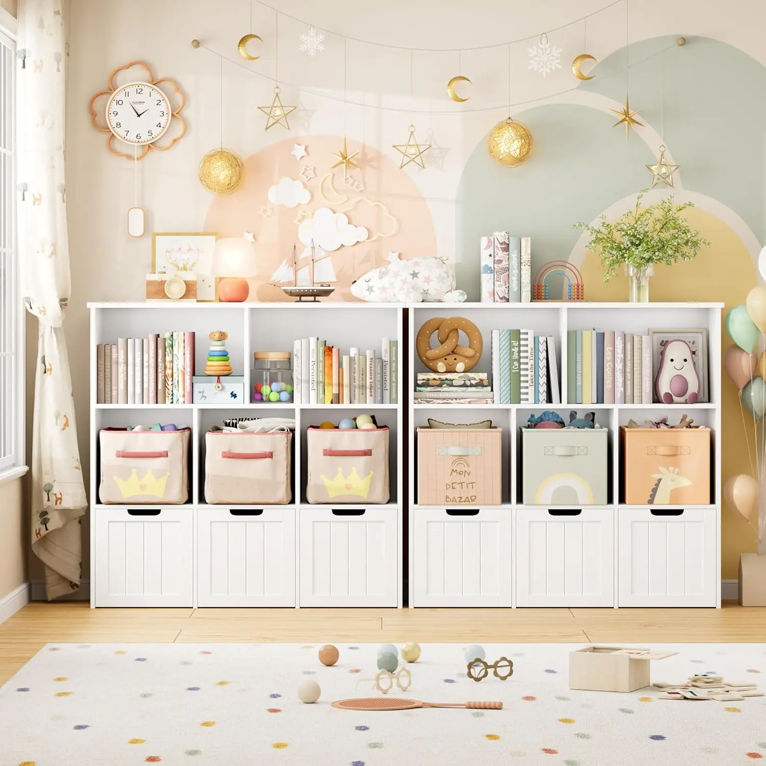 • 【Perfect Gift】This book organizers and storage is an amazing gift for your little one or friends, helps develop and improve children’s organizing skills. Don’t want a book storage cabinet? Of course OK! The simple design and functional storage aim to create a powerful storage solution that matches the most home decor. It’s also suitable for playroom, living room, kitchen, and hallway storage.