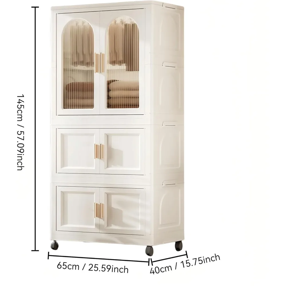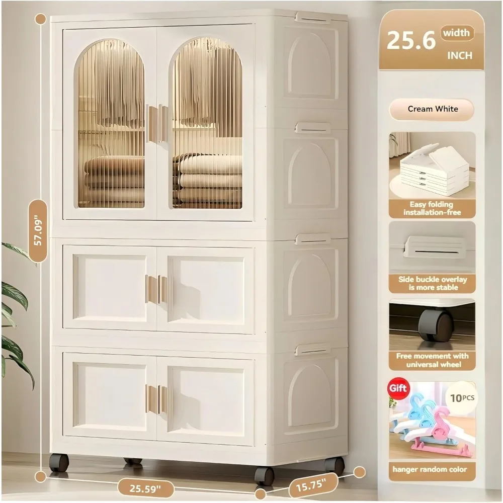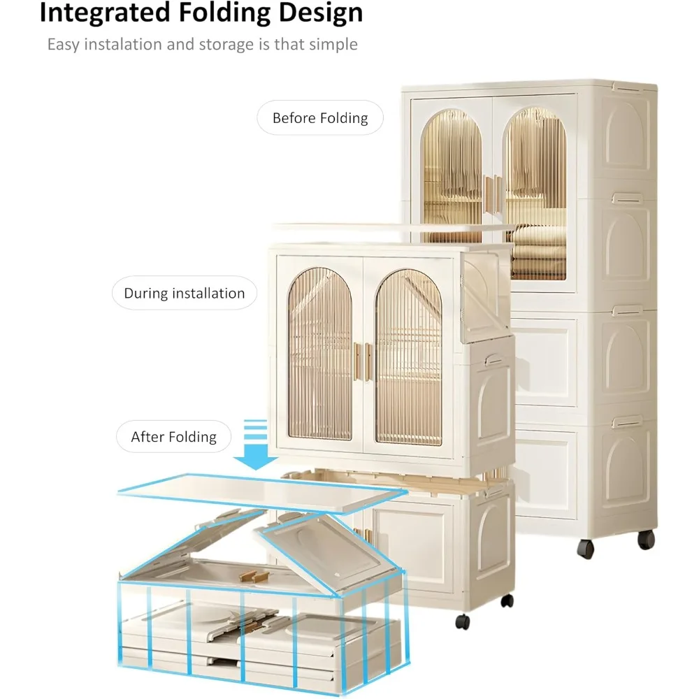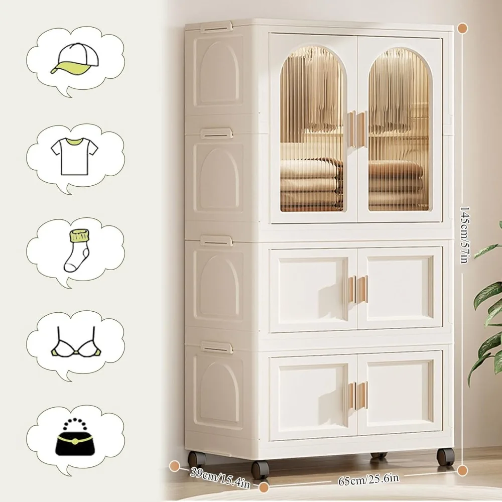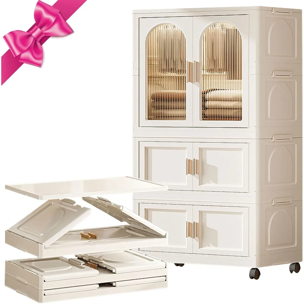 These Stackable Storage Bins with Magnetic Doors offer a versatile and space-saving solution for organizing any room. Made from durable plastic, each unit includes one wardrobe-style layer for hanging or larger items and two folding box layers for neatly storing clothes, toys, linens, or accessories. The magnetic front doors open smoothly and keep items dust-free, while the stackable design lets you customize your storage system to fit closets, bedrooms, playrooms, or laundry spaces. Easy to assemble, sturdy, and stylish—this organizer helps keep your home tidy and clutter-free.